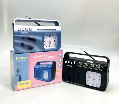 Kemai MD-501BT एफएम पूर्वाह्न दप 3 बैंड के साथ घड़ी के साथ रिचार्जेबल रेडियो यूएसबी एसडी TF Mp3 प्लेयर
